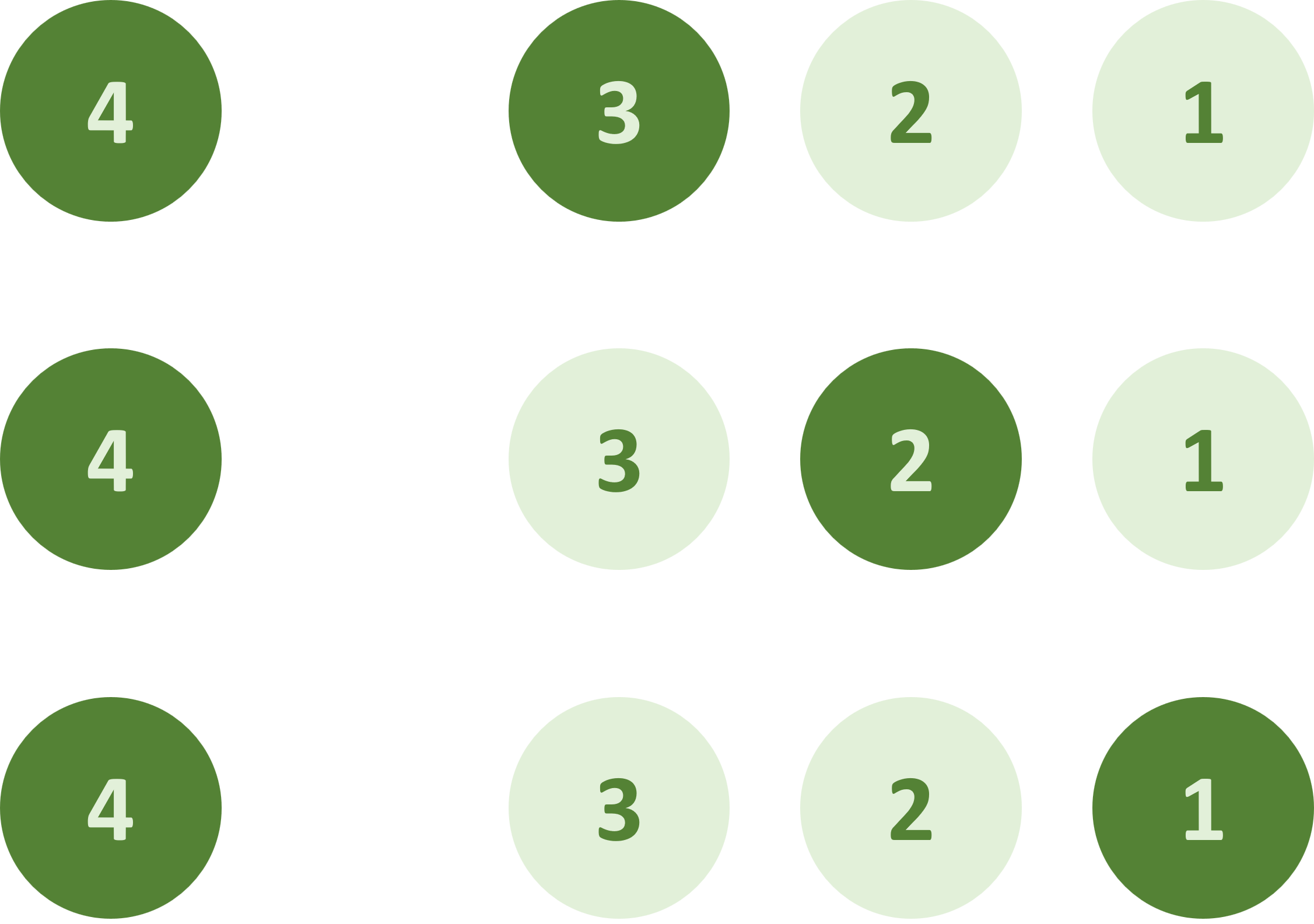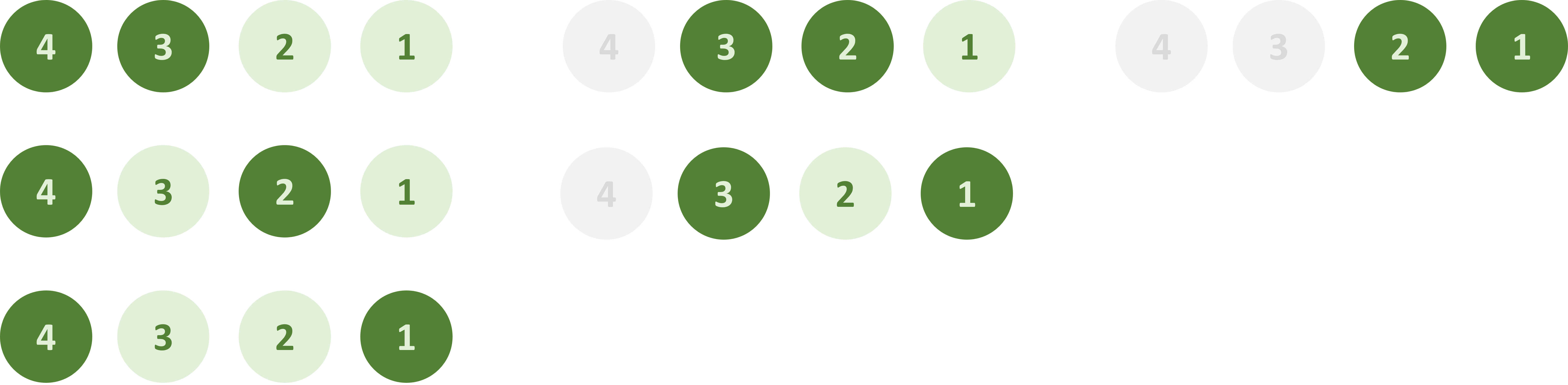 그 후 4를 제외하고 3을 고정, 뒤의 숫자를 1개 고른다.