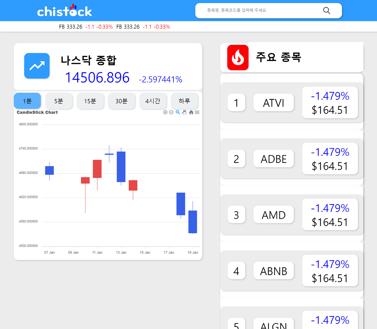 치스톡 1.0 홈화면