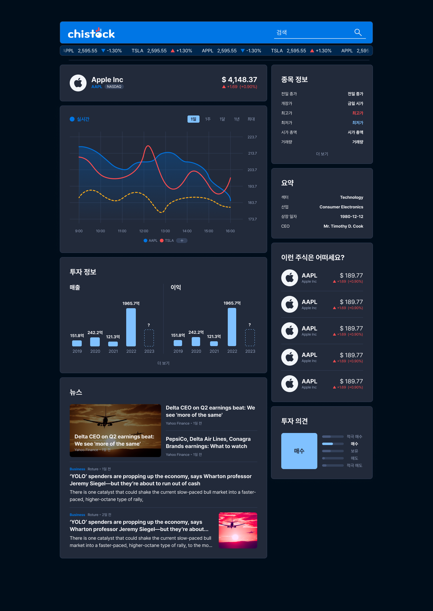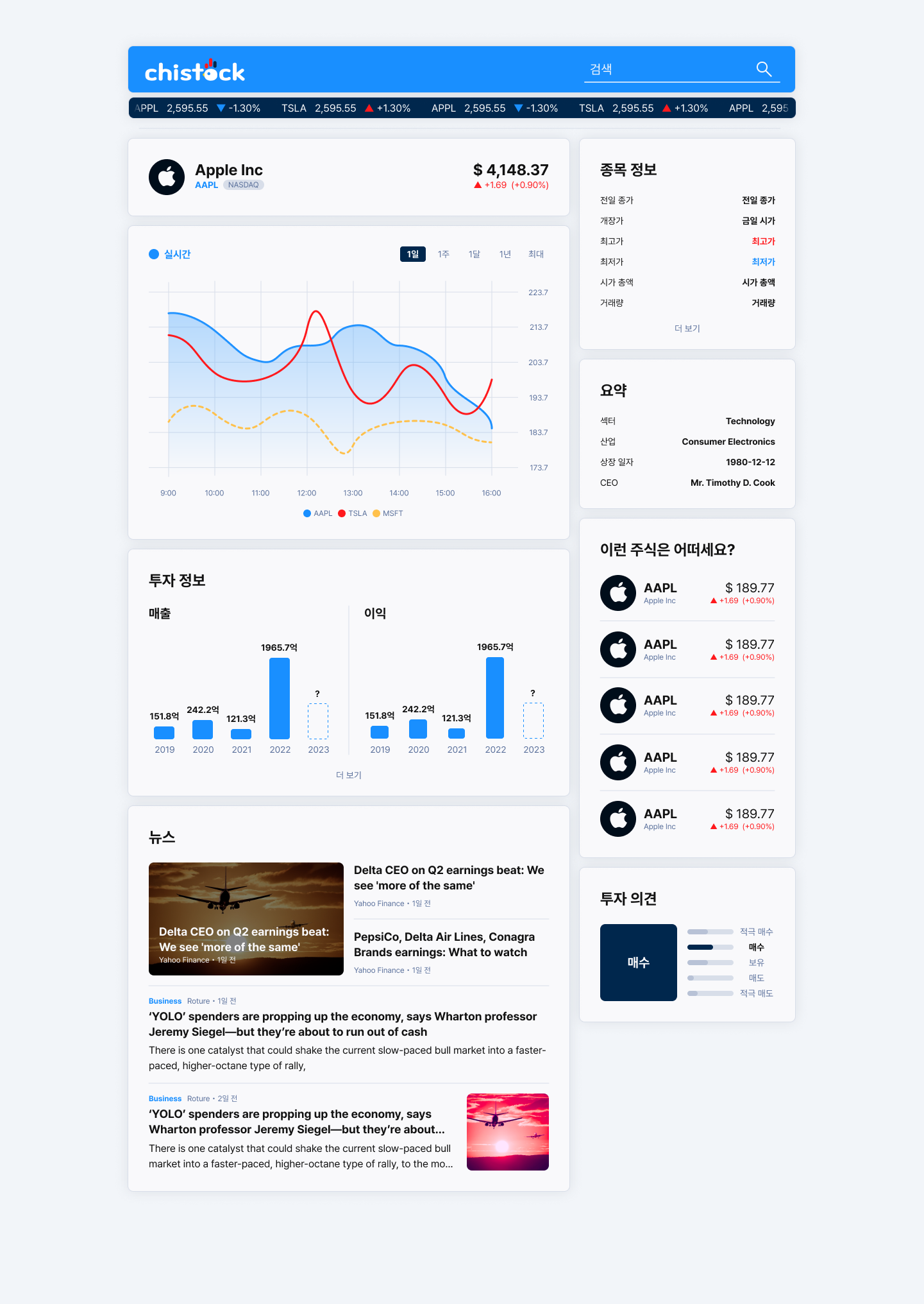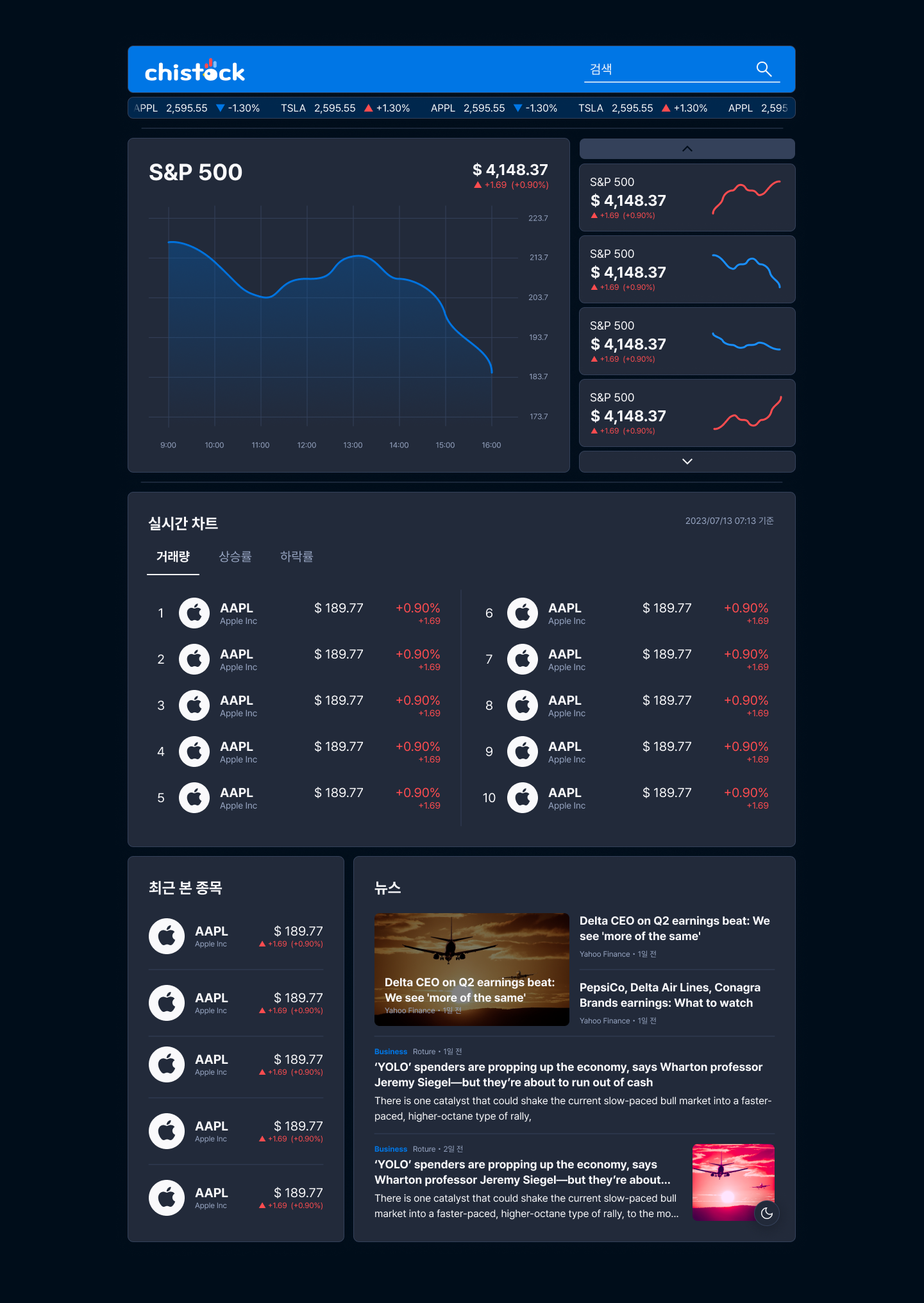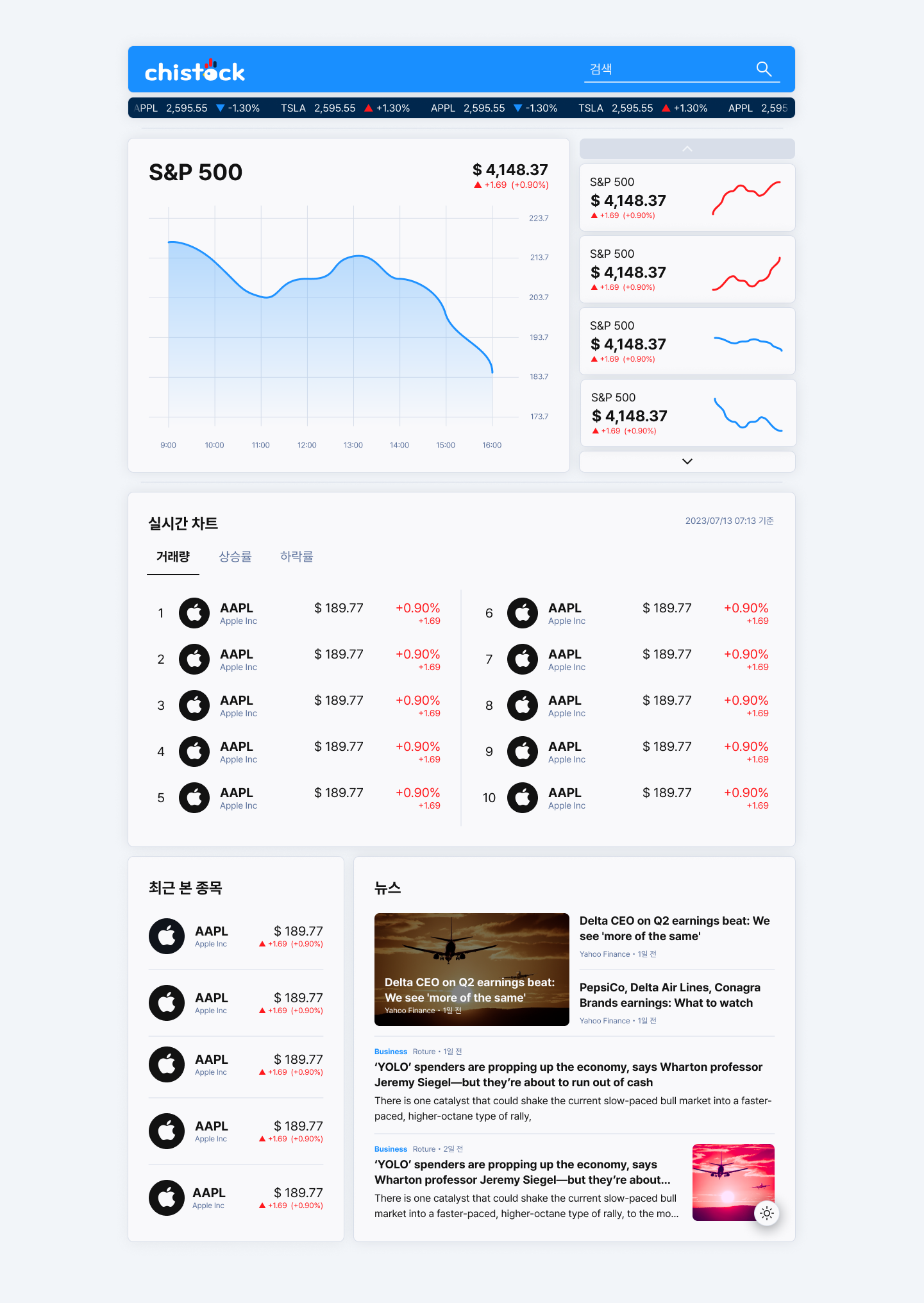 이 프로젝트에 존재하는 화면은 단 두 개, 홈 화면과 개별 종목 화면이다.