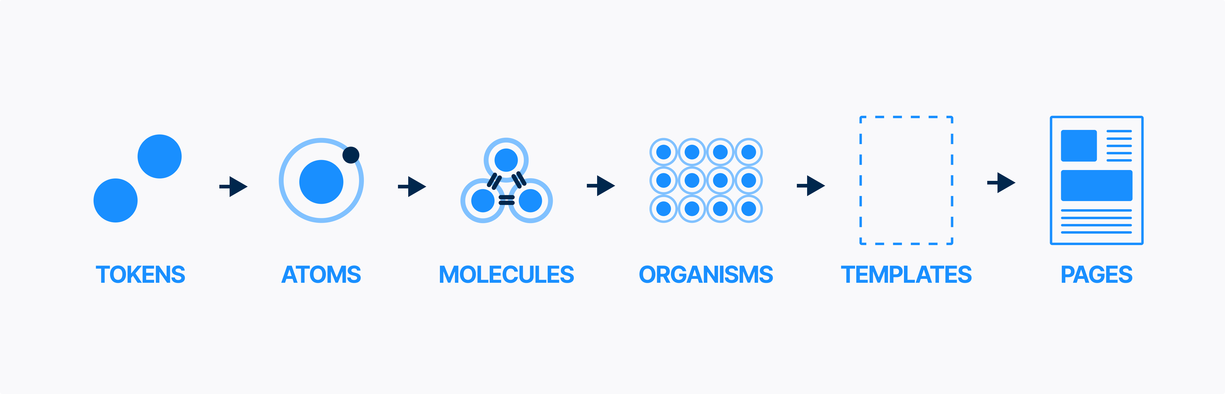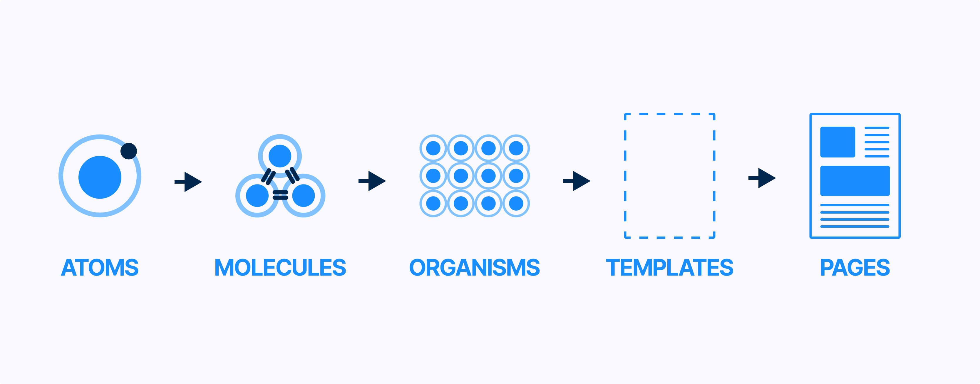 아토믹 디자인의 각 단계의 역할은 아래와 같다.