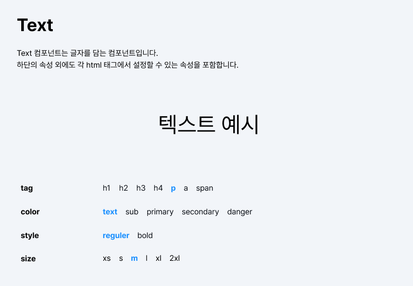 이제 이 디자인 토큰을 활용해 만들어진 컴포넌트인 Text 컴포넌트를 보자.