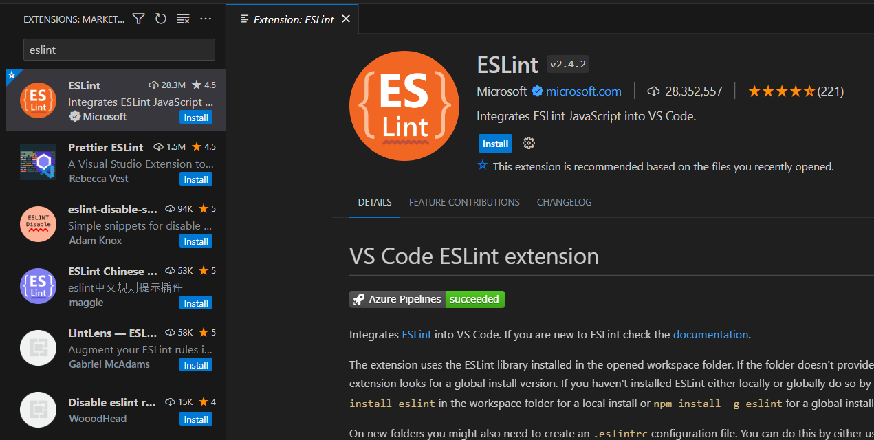 즉, 이 플러그인만 설치한다고 되는게 아니라 ESLint 라이브러리를 프로젝트에 별도로 다운받아야한다 사용할 수 있다.