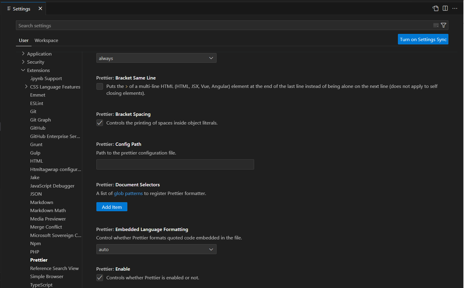 먼저, 익스텐션으로 설치한 경우에만 적용할 수 있는 VS Code 설정을 통해서 설정하는 방법이다.