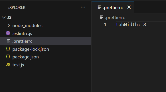 두 번째로는 prettierrc 파일을 통해 설정하는 방법이다.