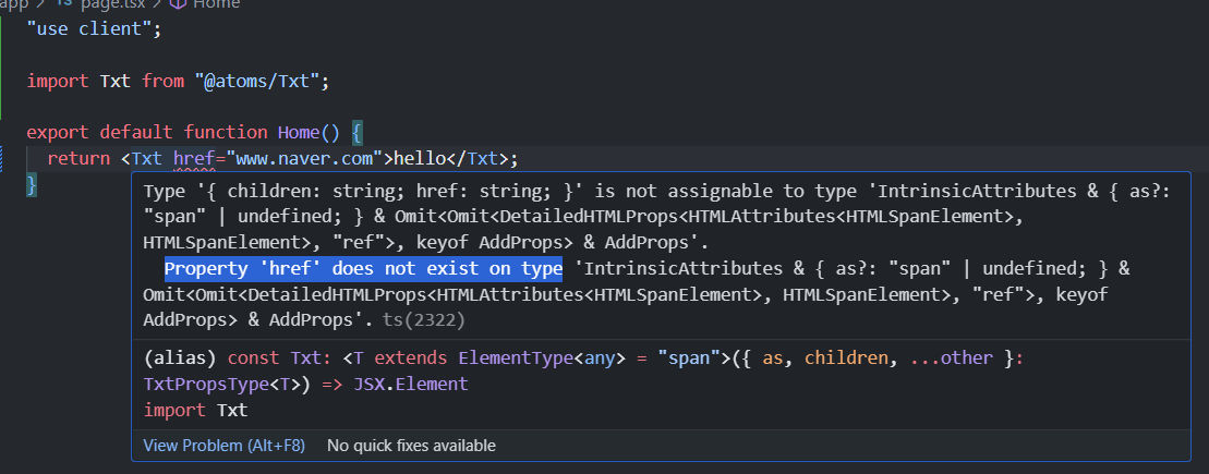 바로, span 태그에서 href 속성을 사용해도 타입스크립트에서는 아무런 에러를 내주지 않는다는 것이다.