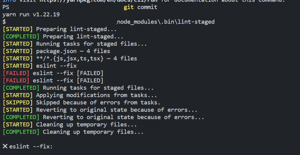 husky는 lint에서 걸리면서 autofix 할 수 없을 경우 알아서 commit을 중지한다.