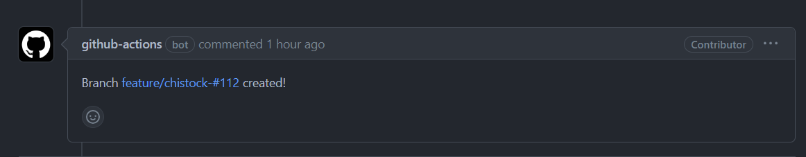 이제 issue에 Assignee가 할당되면, Create Issue Branch가 작동해서 브랜치를 만들고 위와 같이 알려줄 것이다.